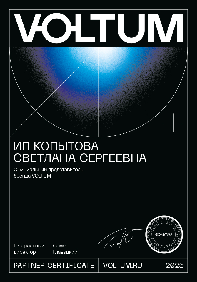 ИП Копытова — авторизованный партнёр НАО «Вольтум». На протяжении всего периода сотрудничества мы