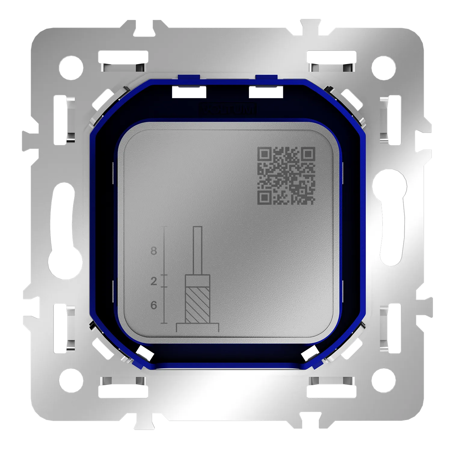 • Габариты: ширина и высота — 73,8 мм, монтажная глубина — всего 26 мм (подходит даже для неглубоких подрозетников)