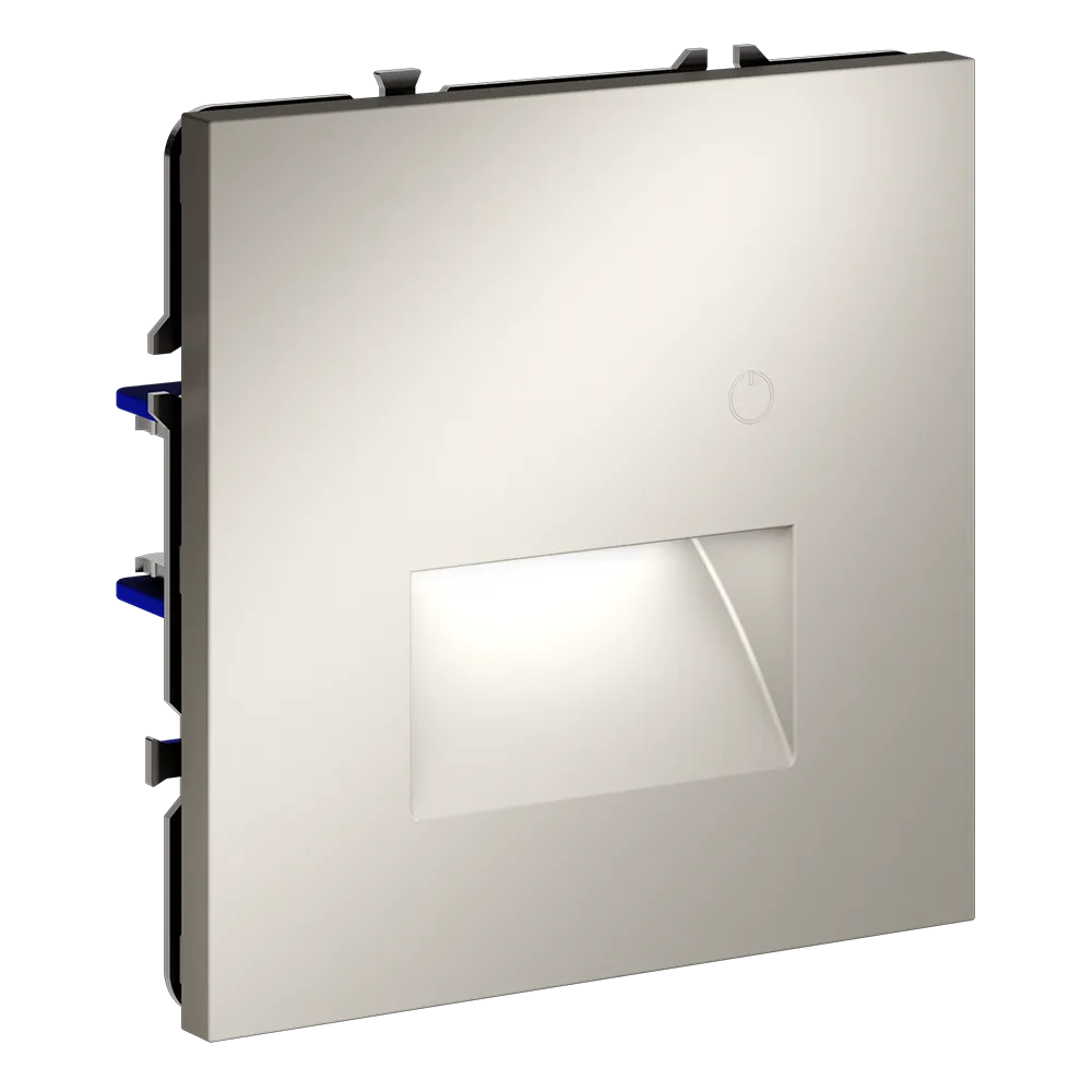 Подсветка устанавливается в стандартный подрозетник и совместима со всеми рамками серии S70 — пластиковыми и стеклянными, что позволяет интегрировать её в любую композицию на стене: рядом с выключателем, розеткой или терморегулятором.