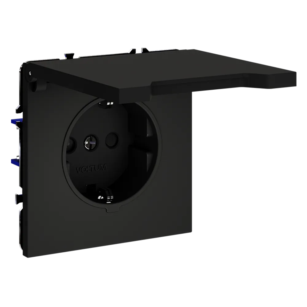 Розетка встраиваемая VOLTUM S70 с заземлением защитными шторками и крышкой 16А (черный матовый)