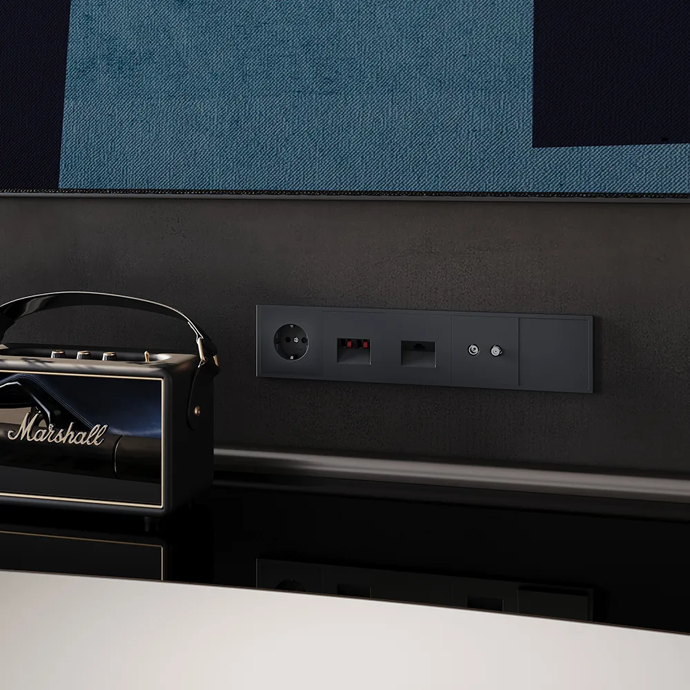 Розетка полностью совместима с пластиковыми и стеклянными рамками той же серии и гармонично вписывается в любые композиции из электрических розеток, выключателей и мультимедийных устройств VOLTUM S70.