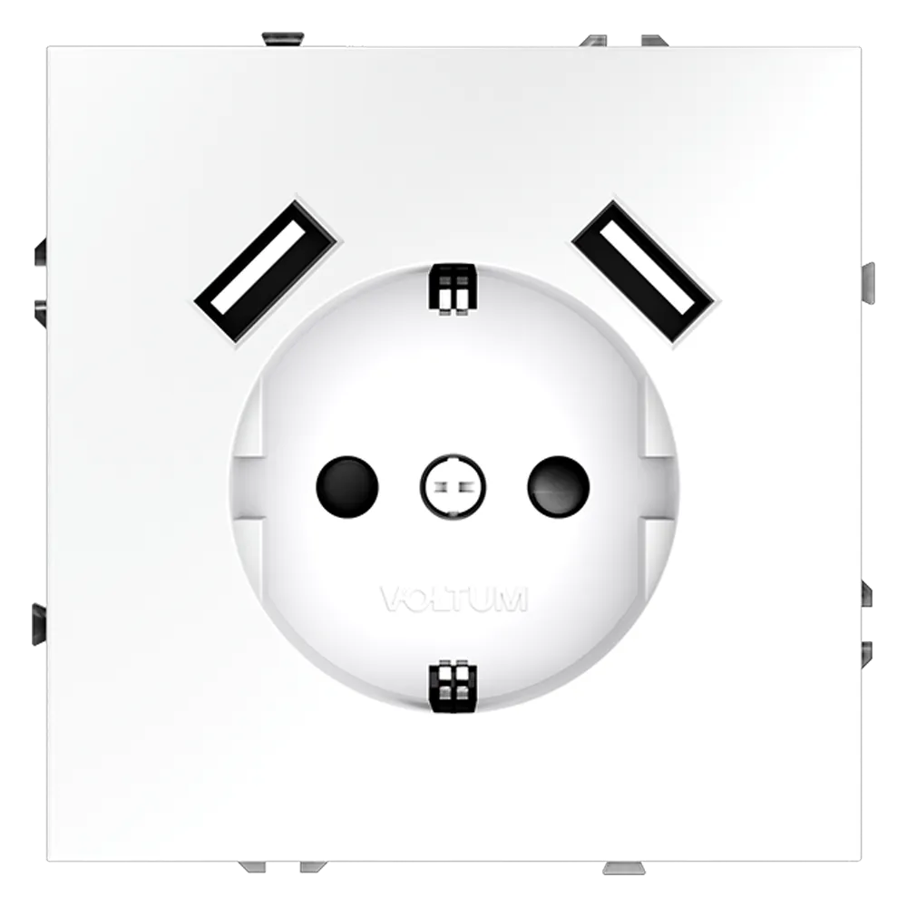 Розетка встраиваемая VOLTUM S70 с заземлением и защитными шторками 16А с USB A+A (белый матовый)