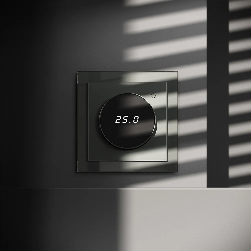 Терморегулятор полностью совместим с пластиковыми, стеклянными и металлическими рамками серии S70, позволяя создать цельную, стильную композицию на стене вместе с розетками, выключателями и другими устройствами.