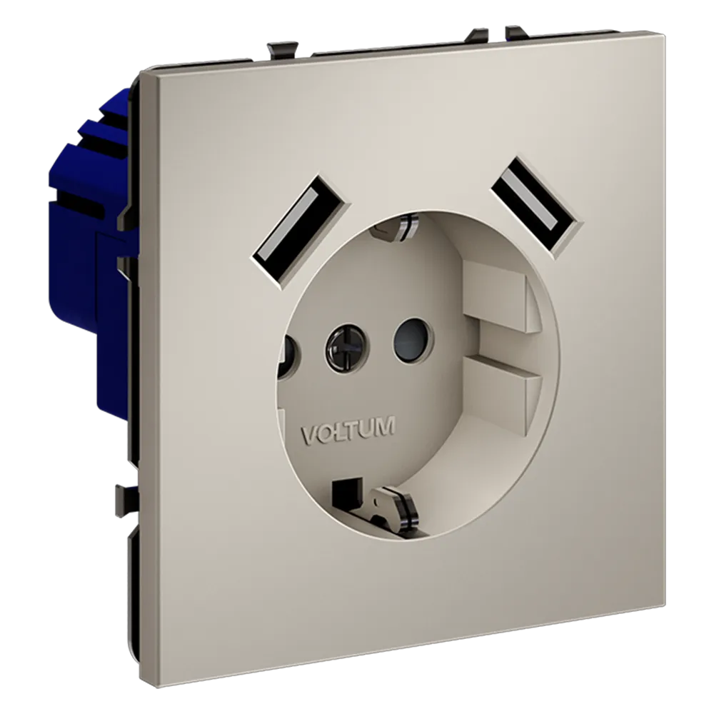 Розетка встраиваемая VOLTUM S70 с заземлением и защитными шторками 16А с USB A+A (кашемир)